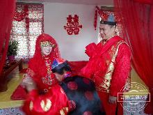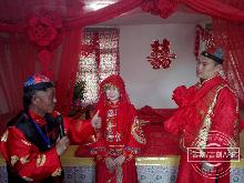 采访采风团体验满族传统婚礼。