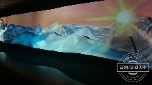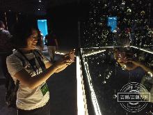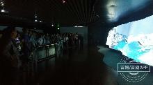 采访采风团成员观看矿泉水产生模拟过程立体视频。
