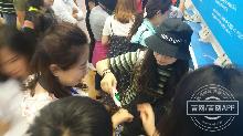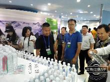 采访采风团成员用皮肤水份测试仪测试自己身体水份情况。