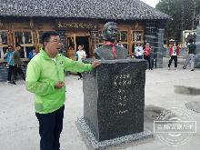 采访采风团走进长白山大关东文化园,参观东北抗联大沙河阻击战战场遗址。