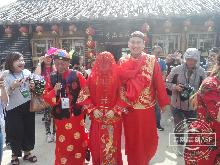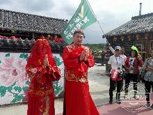 采访采风团成员走进长白山大关东文化园,体验满族婚礼。