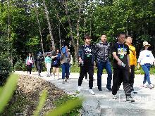 采访采风团成员参观景区生态采摘园。