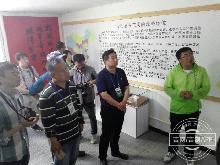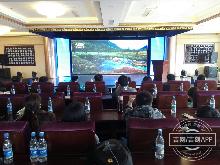 2017“V游延边·发现精彩”采访采风团观看安图长白山历史文化园宣传片。