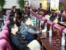 采访采风团成员采访天鼎大酒店有限公司总经理孟庆凯,了解长白山历史文化园景区情况。