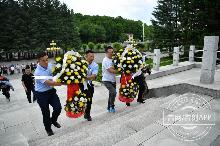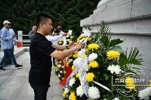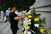 2019-06-22 13:01齐智 长春李志明 李煦在杨靖宇将军殉国地,吉林省新媒体协会执行秘书长周景超代表采访团向杨靖宇将军纪念碑敬献花篮。