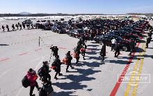 2020-03-24 14:53曹逸群车队驶离长白山机场。