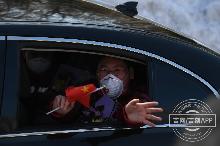 2020-03-24 16:20王恩龙车队到达池北区市区,凯旋归来的医疗队员摇下车窗向欢迎群众频频挥手。