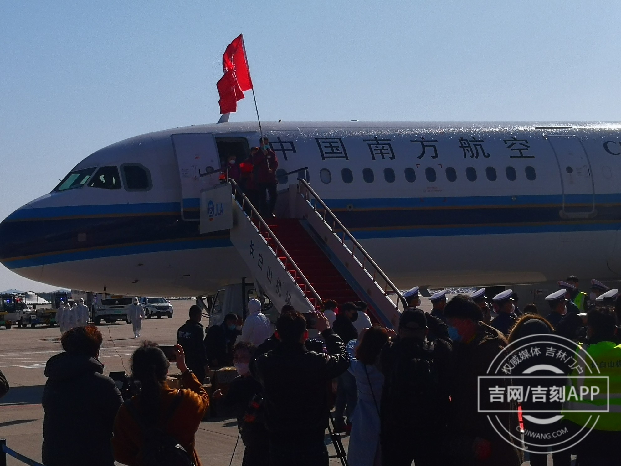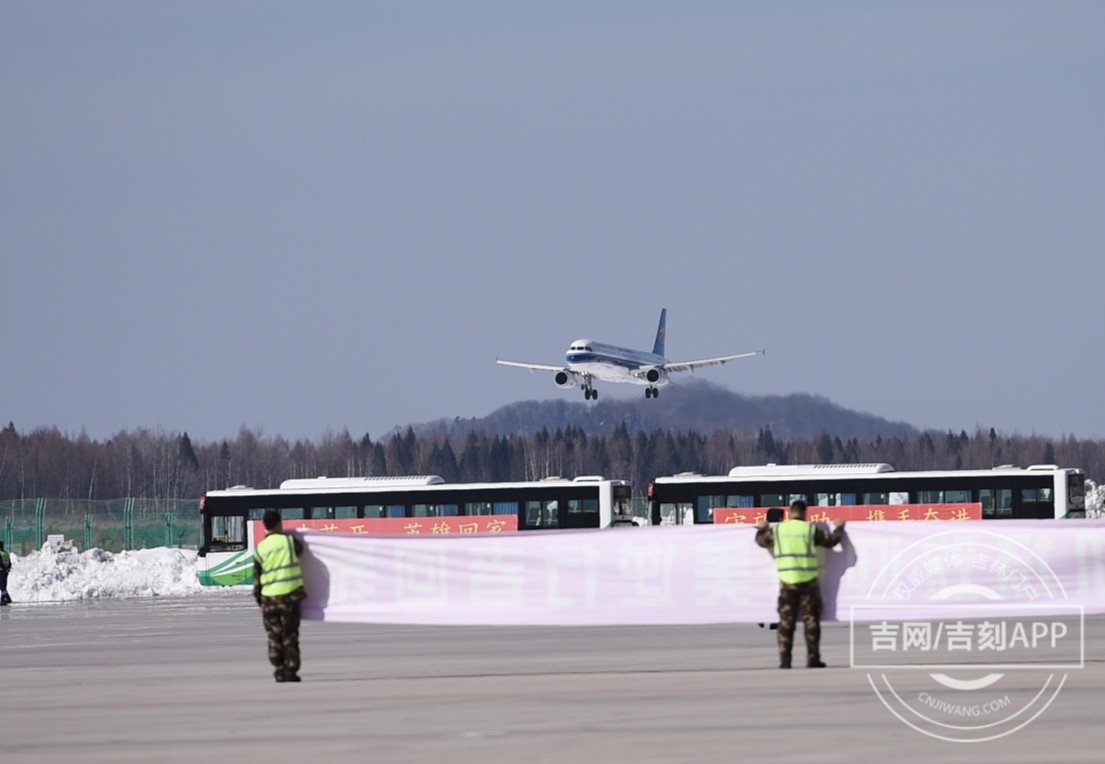 2020-03-24 14:02李易书14时许,来了,来了,载着英雄们的飞机抵达长白山机场!望着即将降落的飞机,大家的眼里有泪花闪动。
