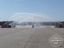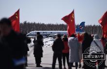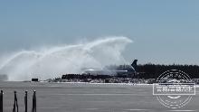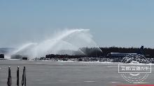 2020-03-28 14:22李易书第三架抵达长白山机场的飞机“过水门”!