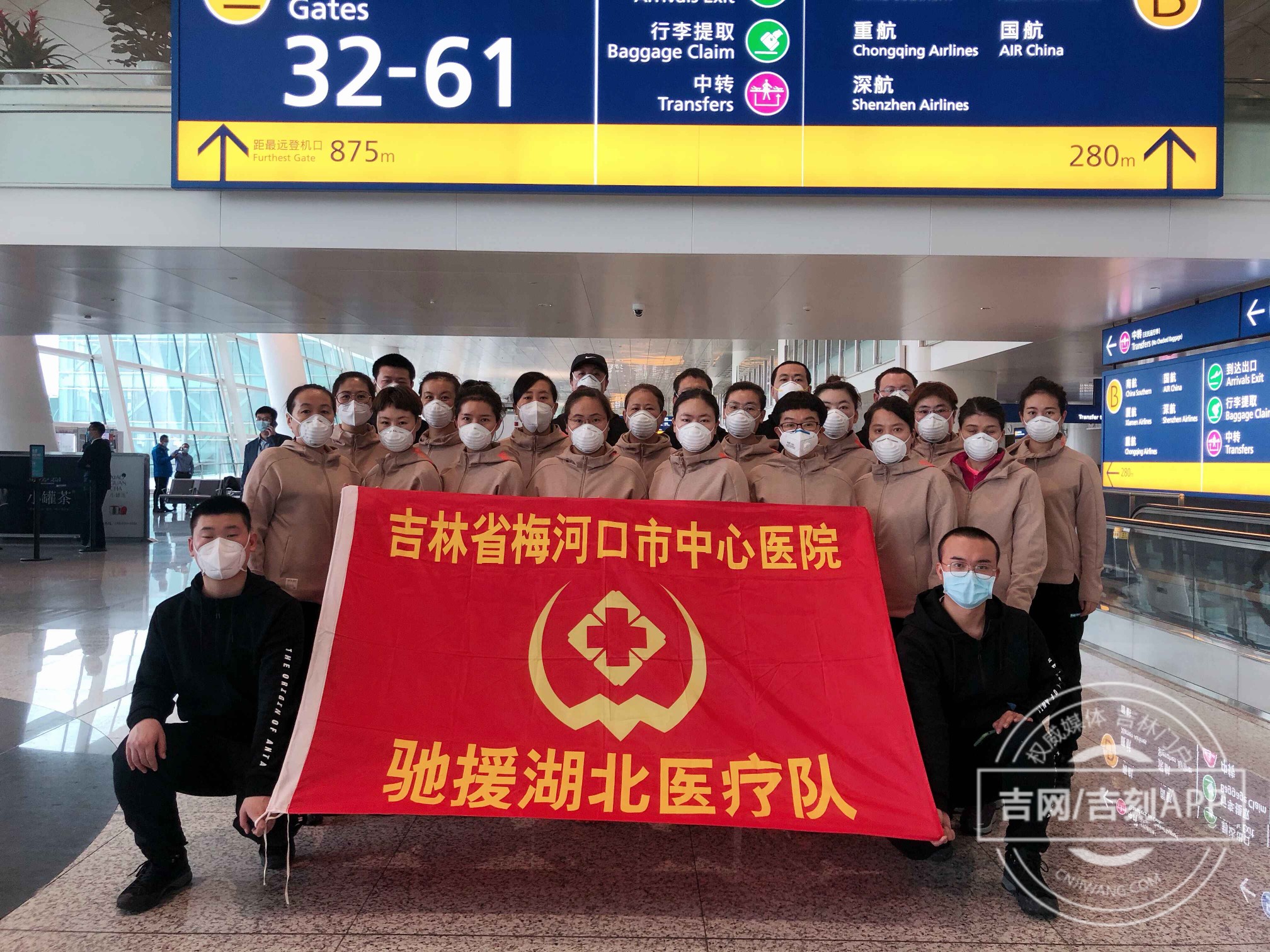 2020-03-28 08:44吉刻齐智 越泓鸣吉林省支援湖北首批重症救治医疗队、第二批重症救治医疗队出发天河机场。