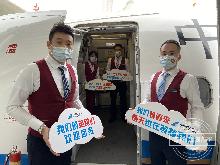 2020-03-28 10:55张昕莹 越泓鸣飞机乘务人员为医疗队员精心准备了饺子和糖果。