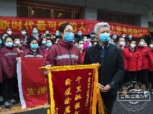 2020-03-28 08:19张昕莹 越泓鸣出发前,武汉环卫工人感谢吉林省支援武汉方舱医院医疗队。